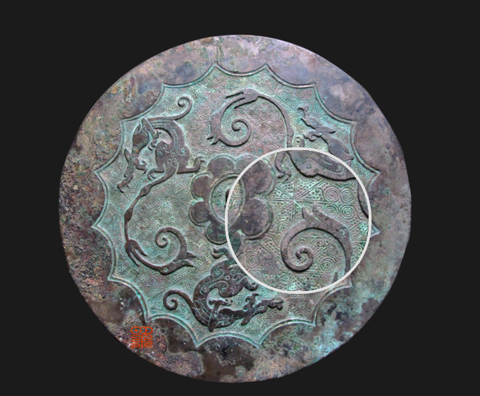 • 战国连弧纹锦格地三龙镜